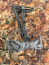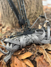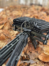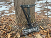 The QuickGear Tie-Down lets you lock your climbing sticks, backpack, heavy coat, or bibs to your tree stand platform in seconds — no knots, no fumbling, no rattling gear on the walk out.